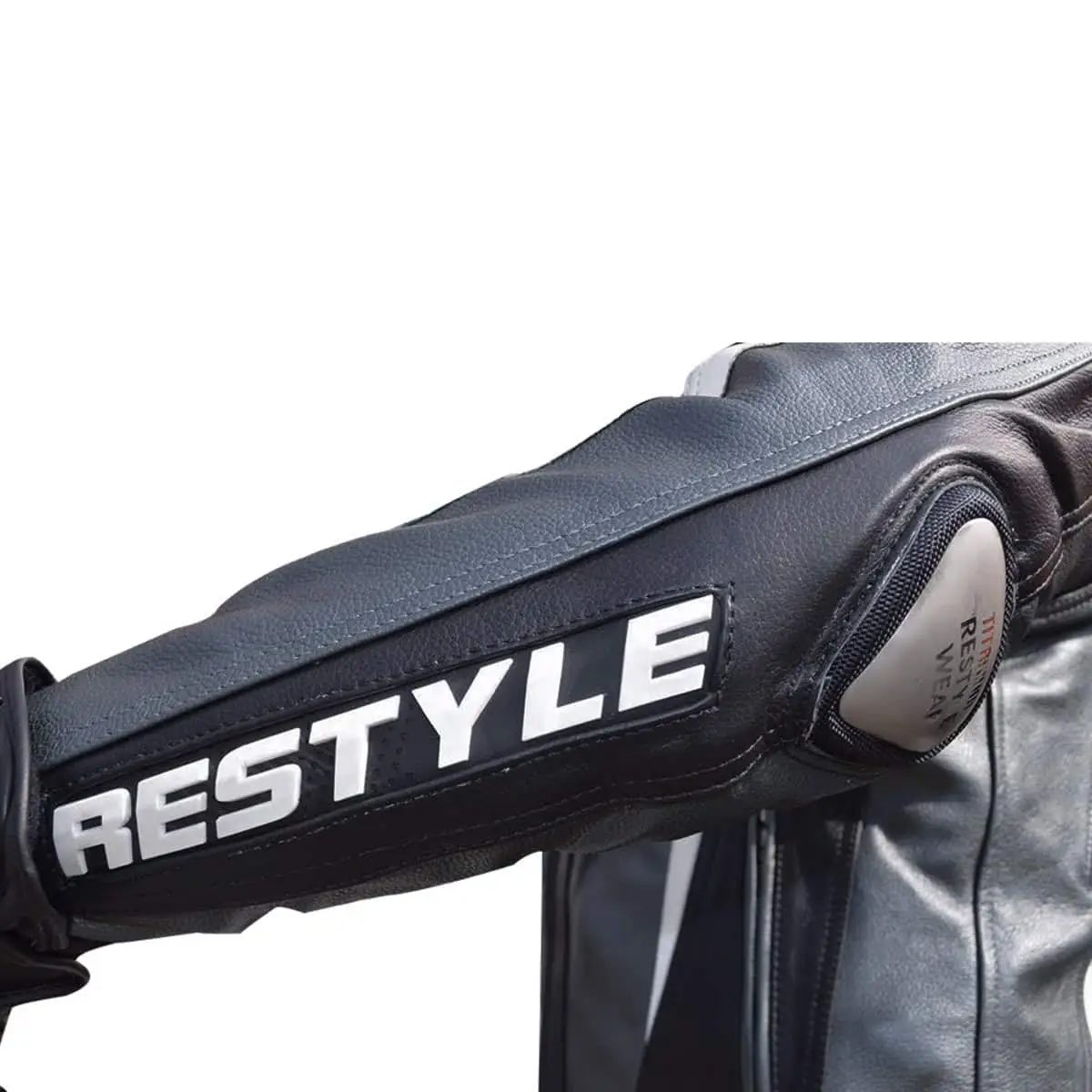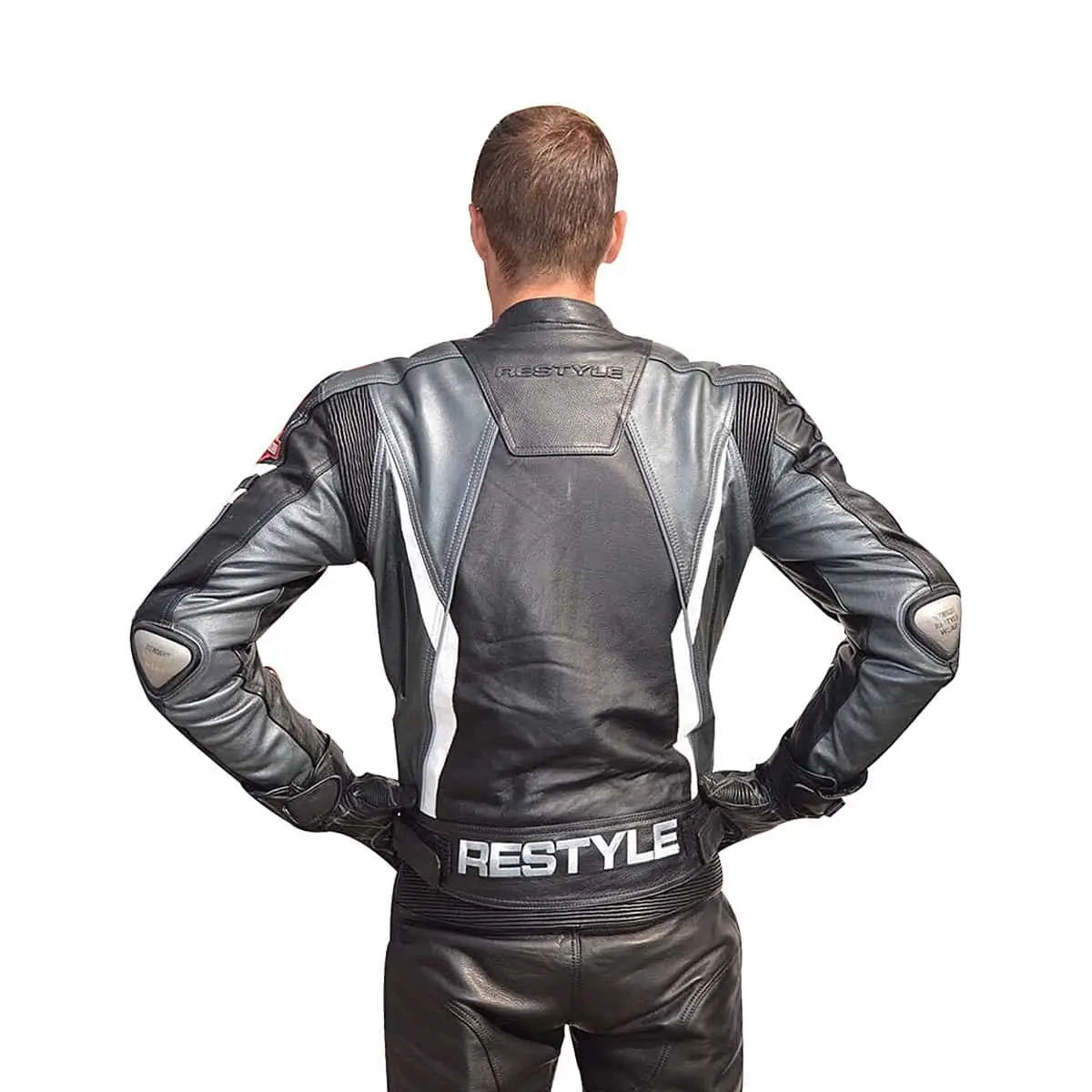 - Deze jas heeft 3D rubberen logo’s op de armen en op de bovenrug is de logo geperst in het leer.
