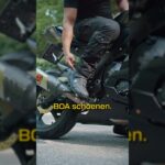 Je draait eraan en hij zit vast. Wil je ze open klikken? Trek eraan en voila, hij gaat helemaal open met de BOA aansluiting. Deze motorlaarzen, met Kevlar erin, zijn wind- en waterdicht en voorzien van reflectie en strakke biezen, waardoor ze niet alleen modern ogen, maar ook maximale veiligheid bieden.