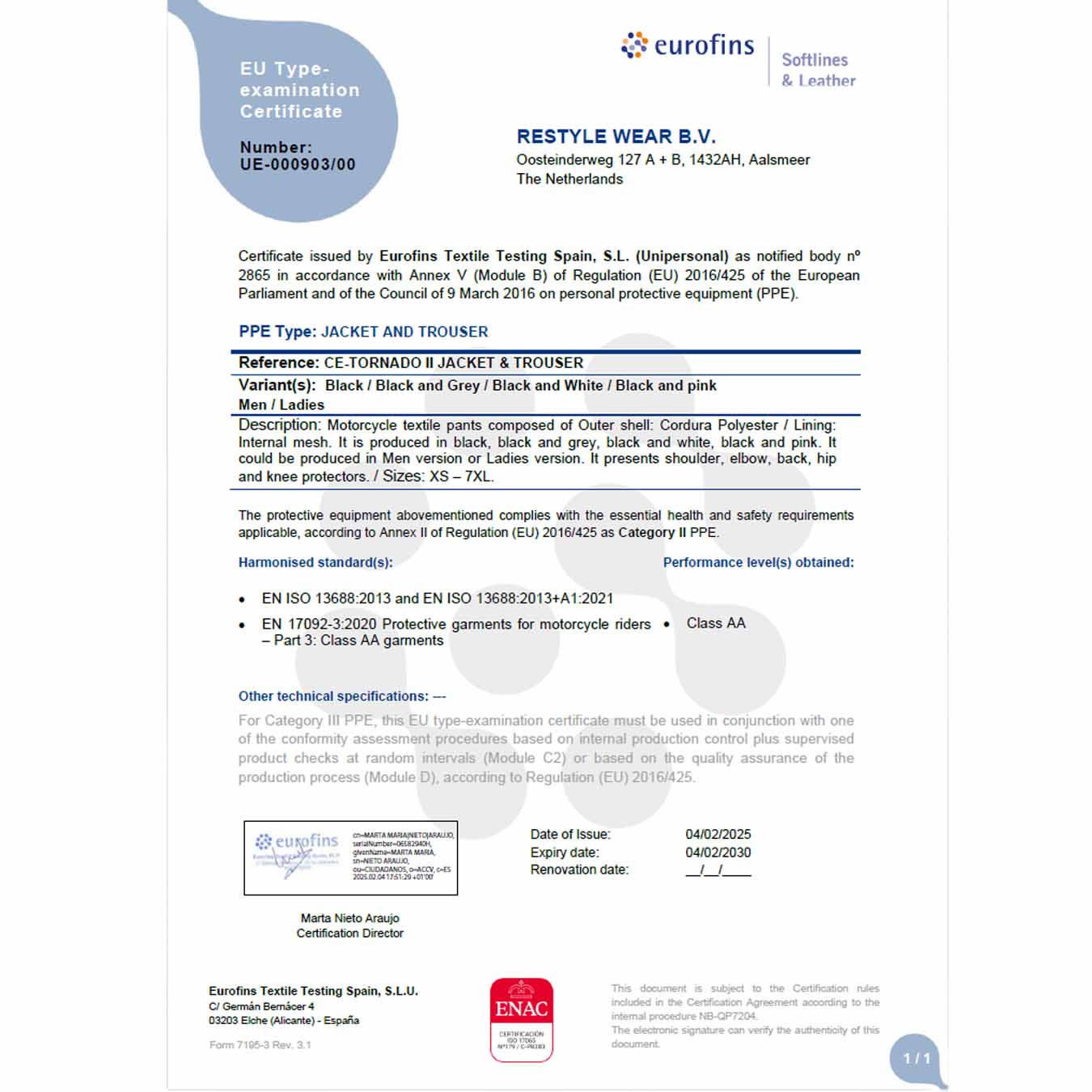 Het CE-Typhoon motorpak is een nieuwe collectie motorpak, verkrijgbaar in een neutrale zwarte uitvoering en een grijs-zwarte variant. Dit veilige en stijlvolle pak heeft de strenge dubbele AA-keuring 2025 probleemloos doorstaan en biedt gegarandeerd optimale bescherming. Dankzij de elegante lijnen en modieuze esthetiek is de CE-Typhoon perfect voor motorrijdsters die stijl en functionaliteit willen combineren. De duurzame constructie van jas en broek, samen met de elegante zwarte stiknaden, zorgt voor een luxe uitstraling.