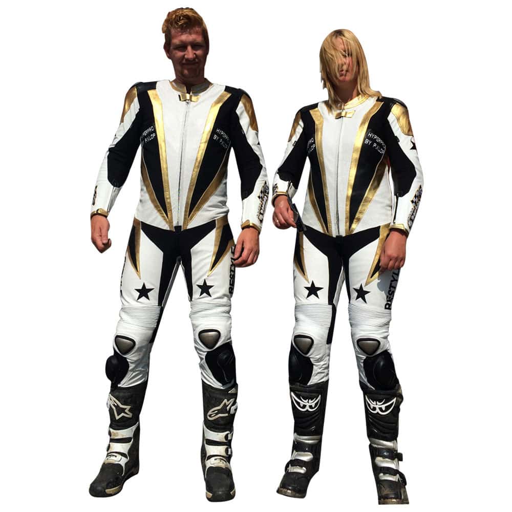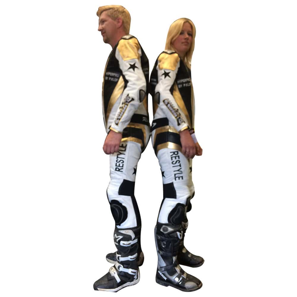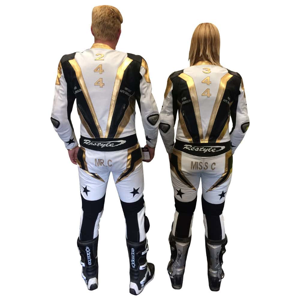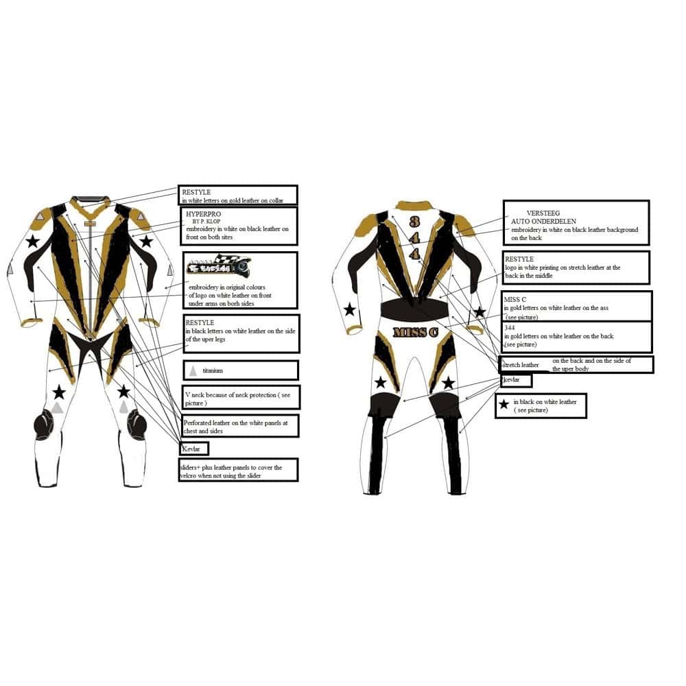 Zoals velen van u onwaarschijnlijk al weten, hebben wij alles letterlijk in eigen beheer! Circuit overalls op maat gemaakt behoren van oudsher ook tot één van onze specialismen. Dit is een speciaal ontwerp aangeleverd door de klant en professioneel op maat gemaakt door RESTYLE. Het betreft hier circuit motorpakken voor CC Racing team. De pakken zijn volledig naar de wensen van de klant gemaakt. We hebben vele sponsor logo’s geborduurd op deze maatpakken. De pakken zijn gemaakt uit hoogwaardige topkwaliteit volnerf rundleer met een maximale dikte van 1.6 mm. De motorpakken zijn voorzien van diverse custom made logo’s, diverse borduurwerk, Kevlar, CE-protectie, Titanium en een exclusief design met wit en goud kleurig leer. Elk deel van de huid is professioneel opgemeten voor een perfect fit. Zie het eind resultaat in de foto’s en mocht u interesse hebben in een circuit motorpak op maat, dan vernemen wij dat graag. Maak hiervoor gelieve een afspraak.