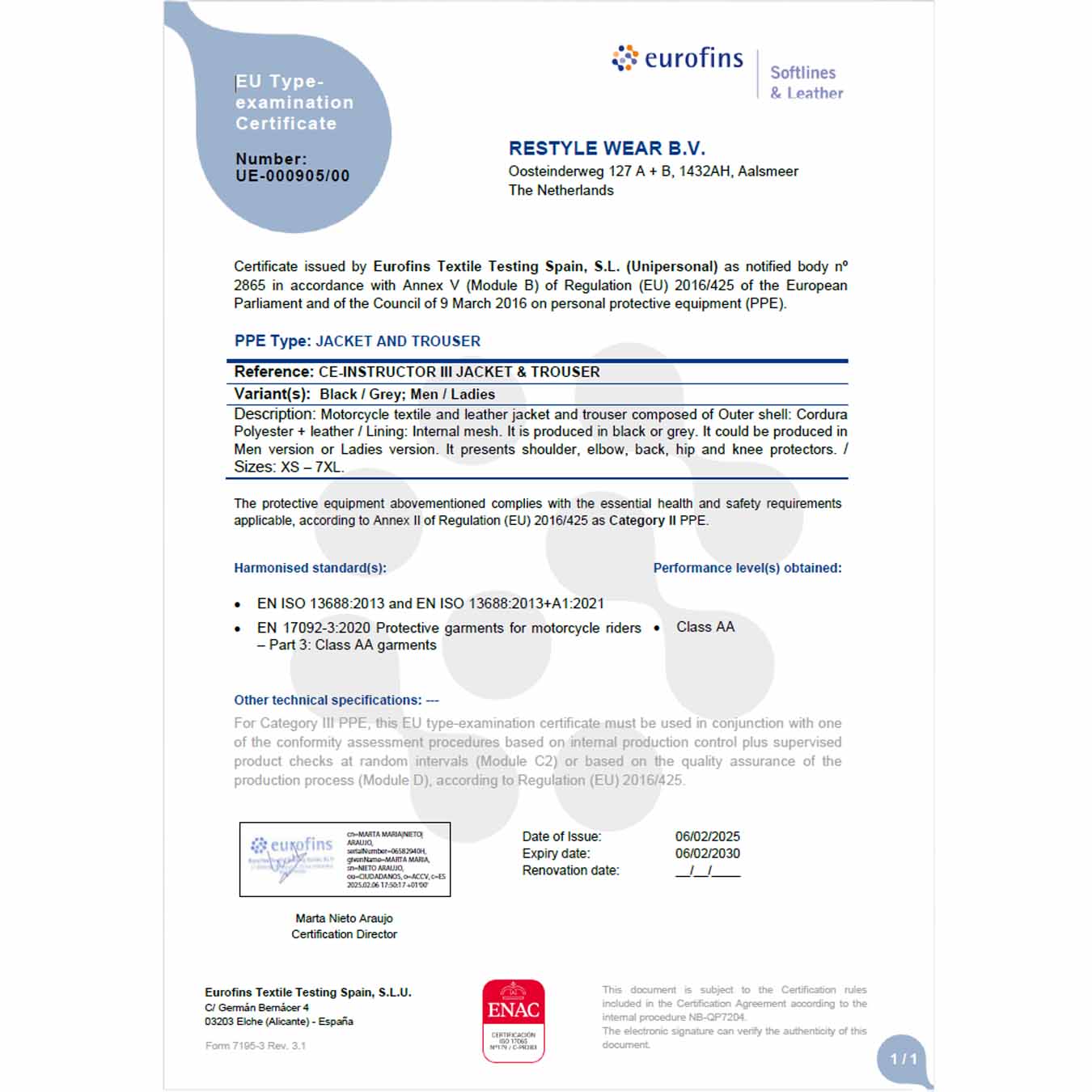 Op veler verzoek introduceren wij de CE-Instructor III motorjas in een nieuwe frisse lichte kleur met eventueel een bijpassende motorbroek. Deze hoogwaardige motorjas heeft een nieuwe strenge dubbele AA KEURING (2025)!Ā Hij heeft alle testen probleemloos doorstaan en hij zal je gegarandeerd optimaal beschermen! Voor meer informatie over deze officiĆ«le keuring adviseren wij je om het certificaat en het uitgebreide keuringsrapport te bekijken door op het balkje āKEURINGā te klikken.