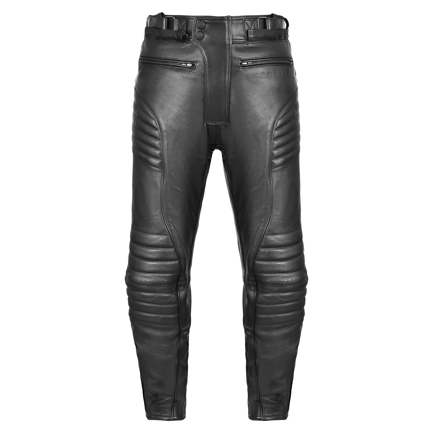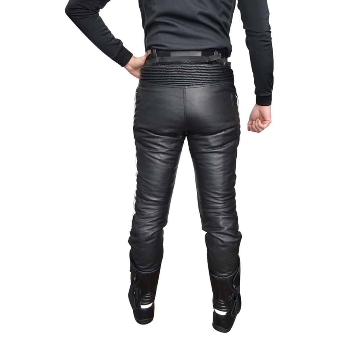 - Stretch leder bij de taille en ritsen onderaan de broekspijpen voor een perfecte pasvorm.