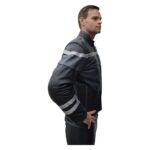 - 3M Scotchlite reflectie banen rondom op de jas en broek.