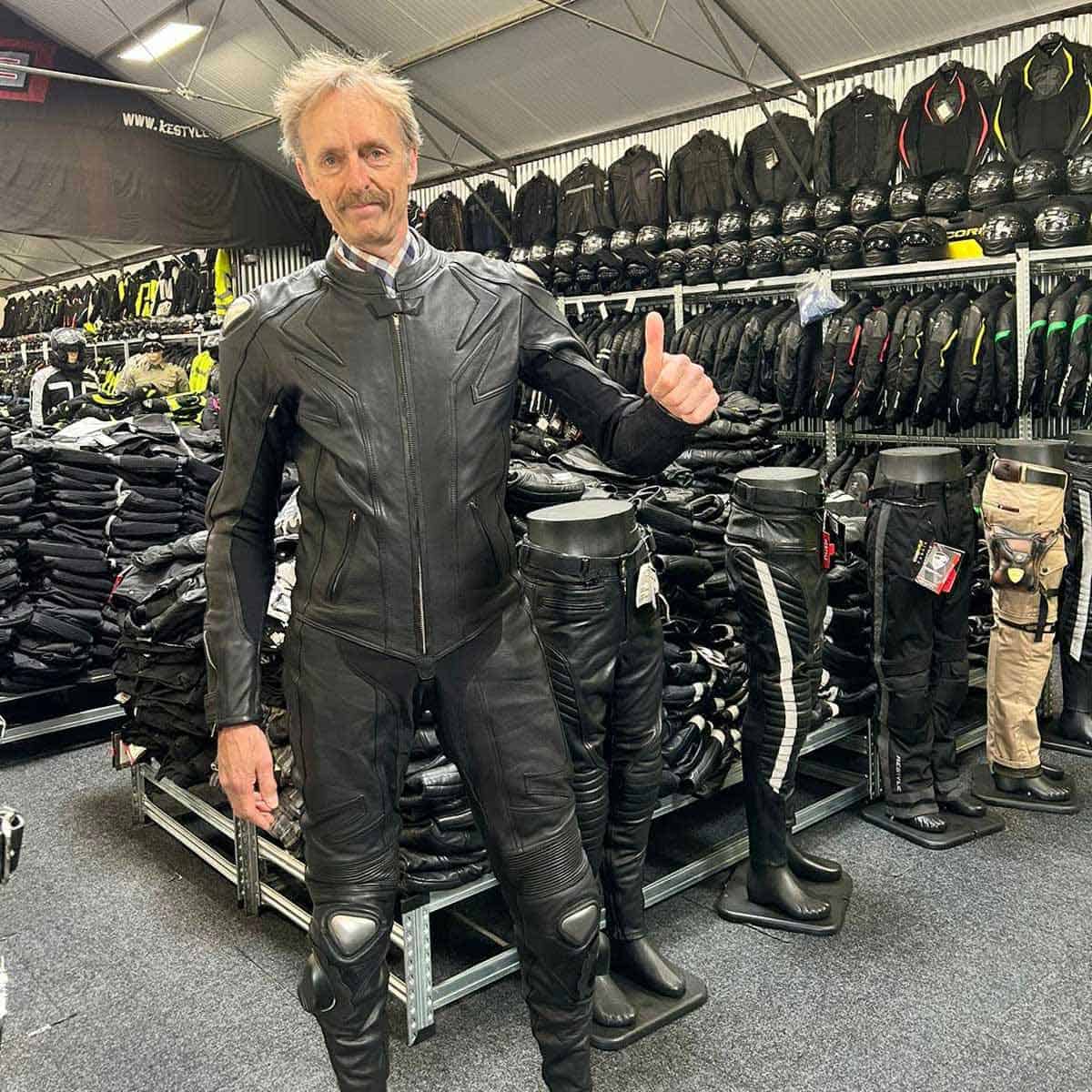 Maatwerk is ALTIJD vakwerk voor een betaalbare prijs bij RESTYLE! Kijk zelf maar even hoe mooi dit pak aansluit bij deze klant. Heb je ook maatwerk nodig? Wil je ook een motorpak hebben, maar dan wel in A-KLASSE leer? De producent in motorkleding brengt al je wensen in vervulling. Deze klant kwam uit Friesland en hij wilde maar liefst twee maatpakken hebben. Hij ging voor een sportief leren ,aatpak en een Cordura outfit op maat. Het pak van deze klant moest gemaakt worden uit het mooiste leersoort Aniline rundleer en het pak moest volledig worden uitgerust met level II CE-protectie. Wij meten je lichaam op meer dan 25 punten op en zorgen voor de perfecte fit met maat garantie! Mocht je interesse hebben, maak dan gelieve een afspraak, zodat je wensen uitvoerig kunnen worden besproken.