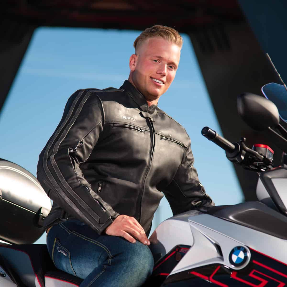 Het CE-Stormrider jack is nieuw in het assortiment. Hij sluit naadloos aan bij de stijl van elke type motorliefhebber. Deze veilige motorjas heeft een strenge en de hoogst haalbare TRIPLE AAA KEURING! Deze jas heeft de AAA-certificering volgens de EN 17092:2-2020 norm, wat betekent dat hij voldoet aan de aller strengste veiligheidseisen. Kortom, deze jas is voor alle laboratoriumtests op het hoogste niveau met succes geslaagd en hij zal je gegarandeerd optimaal beschermen! Voor meer informatie over deze officiële keuring adviseren wij je om het certificaat en het uitgebreide keuringsrapport te bekijken door op het balkje “KEURING” te klikken. Hij is er met donker grijze of witte biezen. Hij is gemaakt van topkwaliteit volnerf mat zwart rundleder. Deze jas zorgt ervoor dat een keuze maken tussen veiligheid en stijl verleden tijd is. Het leer is ongevoelig voor veroudering, hoe vaak u het jack ook draagt.